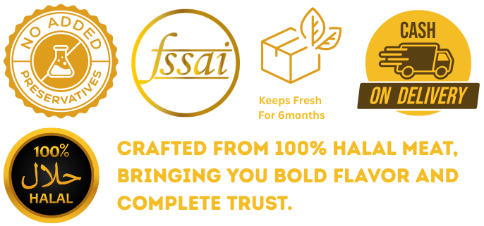 We use 100% halal-certified beef, sourced fresh each batch and cooked in an FSSAI-certified kitchen.